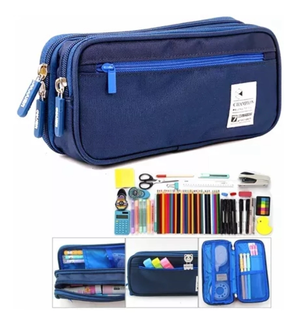 Possui duas divisórias, mais bolso material externo e divisórias internas.